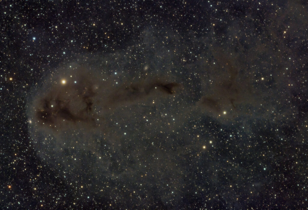 Belichtungszeit (ggf. Filter): 6,45 Stunden (RGB 45×60 Sekunden, DNB 360×60 Sekunden)
