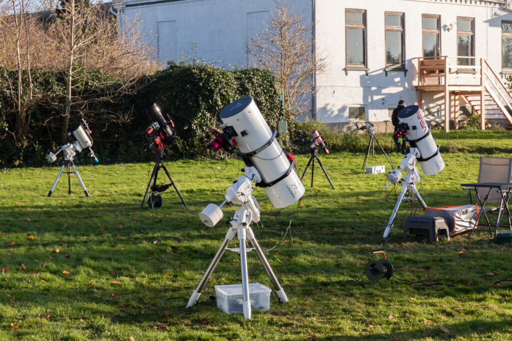 Neben interessanten Vorträgen gab es tagsüber mithilfe von zwei H Alpha Teleskopen die Sonne zu bestaunen. Nachts bei frostigen Temperaturen machten wir es uns am Lagerfeuer und in der Grillhütte gemütlich. Eine regelrechte Warteschlange entstand an Mirkos 12 Zoll Dobson Teleskop, um visuell den Sternhimmel und seine vielseitigen Objekte bestaunen zu können. Nebenher nahmen haufenweise Deep Sky Setups und weitere Kameras hinter den Objektiven ihre schönen Bilder des prachtvoll dunklen Fehmarn-Himmels auf.